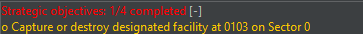 Also note that the objectives window now reflects that this is indeed the facility that we need to capture for the completion of the contract by mentioning the precise hex coordinates of the Comm Center (0103).